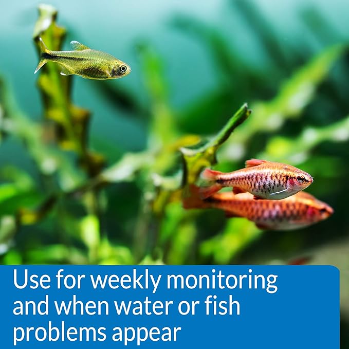 - Accurately monitors 5 most vital water parameters levels in freshwater aquariums: pH, high range pH, ammonia, nitrite, nitrate