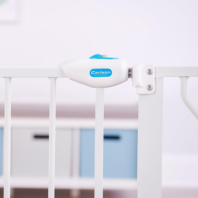 Carlson Extra Wide Walk Through Pet Gate with Small Pet Door, Includes 4-Inch Extension Kit, Pressure Mount Kit and Wall Mount Kit,White