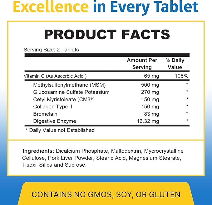 - 6 Synergistic Ingredients - Flexpet’s cat and dog joint supplement combines Glucosamine (cartilage building), Collagen (connective tissue support), MSM (flexibility), Bromelain (enzyme from pineapple), plus digestive enzymes for optimal absorption.
