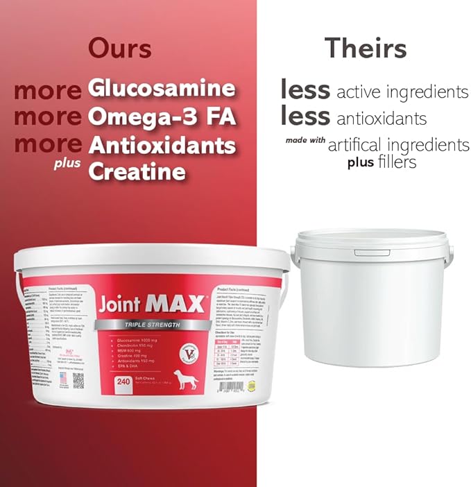 - OUR PROPRIETARY BLEND OF INGREDIENTS IS BACKED BY SCIENCE: Joint MAX is a quality hip & joint supplement for dogs at any stage in life. Our soft chews help ease everyday joint stiffness, arthritis pain and support joint structure. Joint MAX offers a convenient and tasty way to provide essential joint care.
