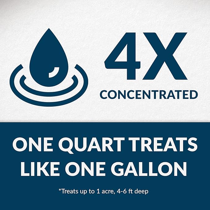 - Highly Concentrated Formula -- The 4X concentrated formula means 1 quart is equivalent to 1 gallon of other dyes. Treats up to 1 acre 4-6 feet deep. No water temperature restrictions, use year-round.
