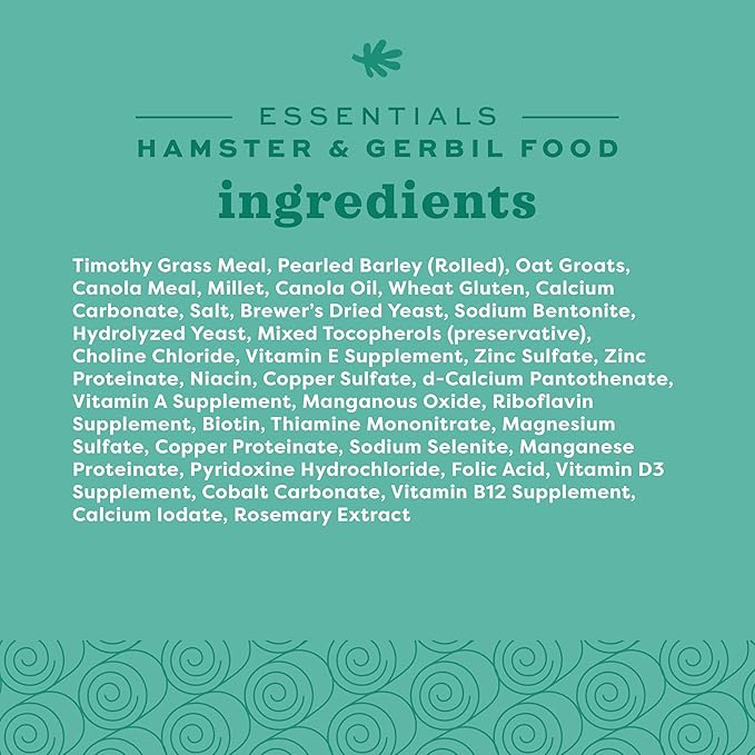 Oxbow Essentials Hamster Food and Gerbil Food, Vitamin & Mineral Rich Daily Diet for Hamsters & Gerbils, Veterinarian Formulated, Small Animal Pet Products, Made in USA, 15 lb Bulk Bag