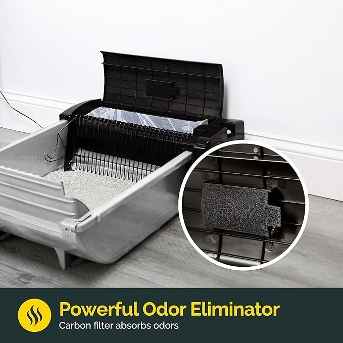 - MESS & ODOR CONTROL β High walled sides decreases litter scatter, spray and ensures cat litter clumps stay inside this litter box. Waste is raked into covered and lined receptacle.