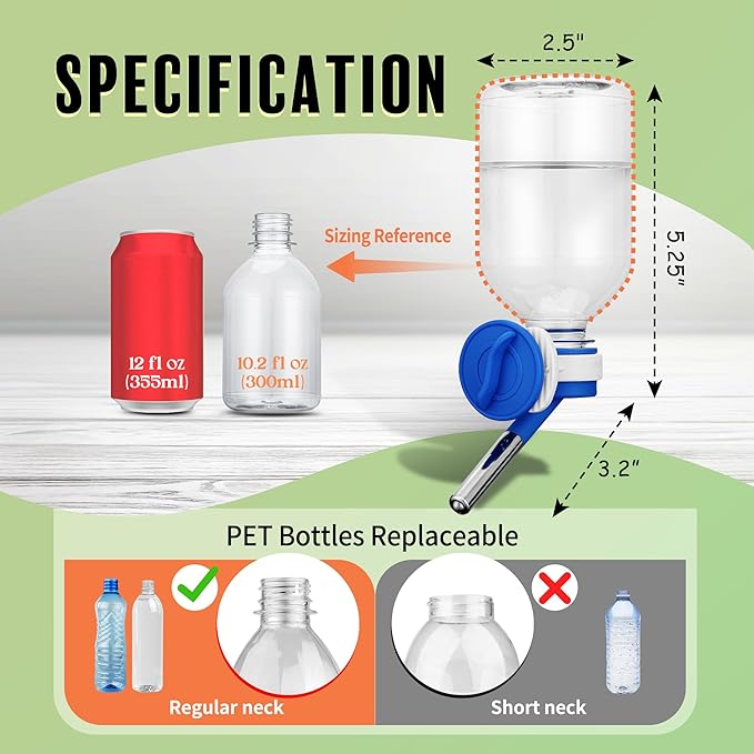 - πΎ Mini-Sized Nozzle (10mm) is recommended for Guinea Pig, Ferret, Hamster, Bunny. / Made of BPA Free Material/ 10.2 oz Capacity.