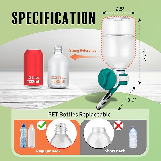 - πΎ Mini-Sized Nozzle (10mm) is recommended for Guinea Pig, Ferret, Hamster, Bunny. / Made of BPA Free Material/ 10.2 oz Capacity.