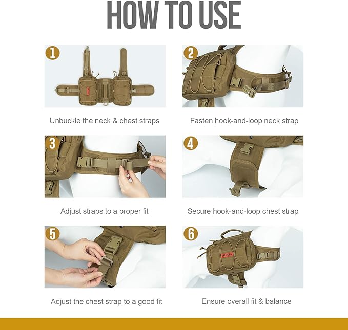 - Adjustable Dog Harness Backpack: Hook-and-loop belly strap with UTX-Duraflex buckles so the pack stays in place and wrap dog's neck & belly around well