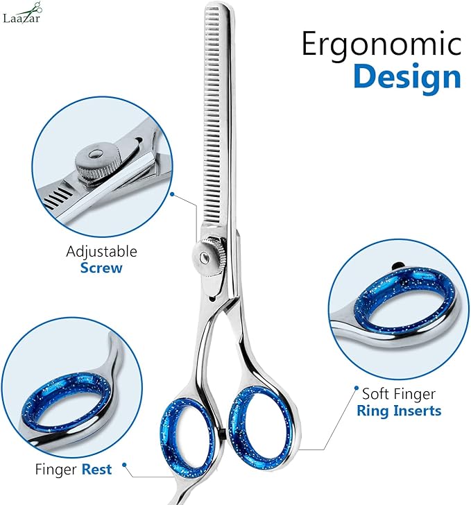 Laazar Pro Shears Thinning Pet Grooming Shear - 6.5 42 Teeth Scissors for dogs cats and pets