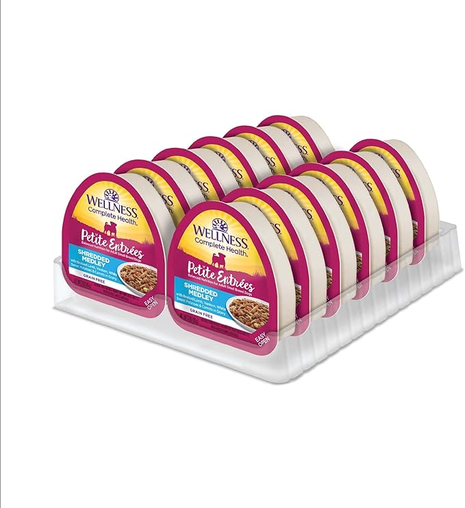 Wellness Petite Entrées Shredded Medley with Braised Lamb, Venison, White Sweet Potatoes & Carrots, 3-Ounce Cup (Pack of 12)