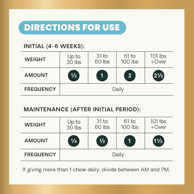 - High-Quality Ingredients: Our vet-formulated dog joint supplements are certified by the National Animal Supplement Council (NASC), routinely undergo third-party testing, and contain no hidden ingredients or synthetic colors