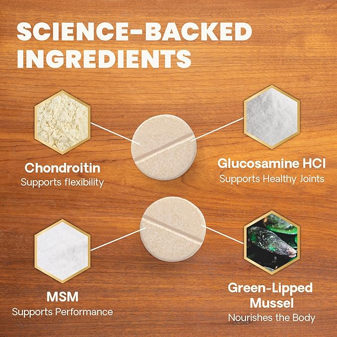 - Delicious Chicken Flavor: These glucosamine and green-lipped mussel joint chewable tablets are like a tasty treat for dogs of all ages and sizes, and the natural imitation chicken flavor is appropriate for dogs with sensitivities to real chicken
