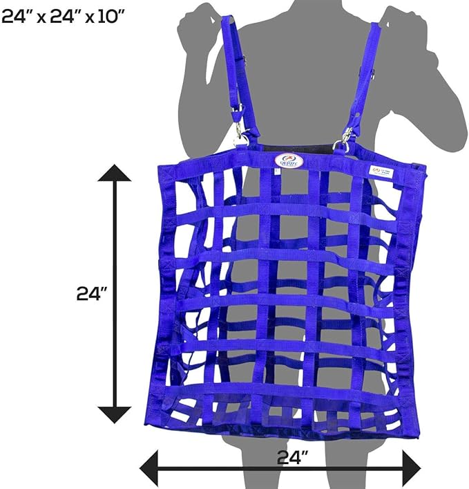 - HOLDS 2-3 FLAKES OF HAY - this 24x10x24" hay bag with 3.5x3β rectangular openings holds approx. 2-3 flakes of Timothy, Orchard, Alfalfa, or any other type of hay. Our hay bags were designed to minimize frustration and can be stuffed in seconds.