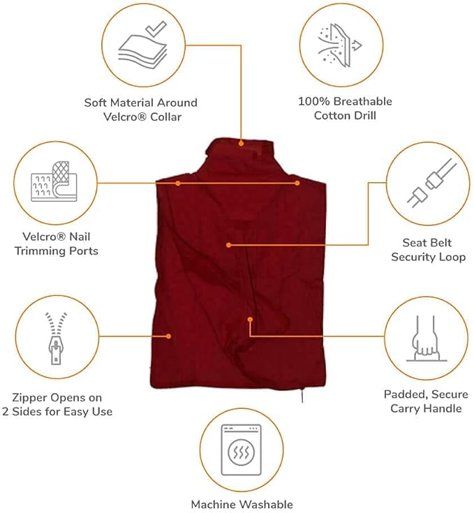 Cozy Comfort Carrier - Large Soft Red Cat Carrier and Cat Restraint Bag for Nail Trimming, Vet Visits, Medication Administration, Dental Care, and Travel
