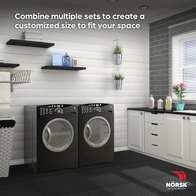 Norsk Foam Floor Gym Mats with Interlocking Tiles, .47" Thick, 24"x24", 60-Pack, 240 Square Feet, Diamond Plate Design, Black