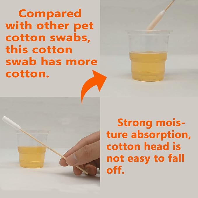 - [High-quality] Spiral cross-wound, to ensure that the cotton head will not fall off easily, the specially lengthened cotton head cannot pass through the dogβs ear canal, nor can it touch the deep part of the ear, safe for your puppy.