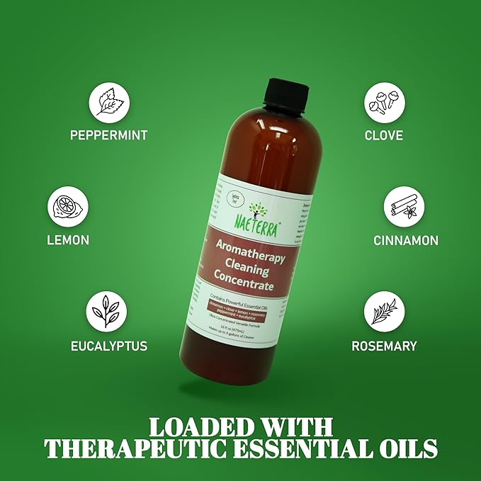 Naeterra Aromatherapy Cleaning Concentrate 16 oz Natural Multi-Surface Cleaner, Plant-Based and Biodegradable, Makes 6 Gallons, Cleaning Essential Oil Formula, Safe for Families and Pets