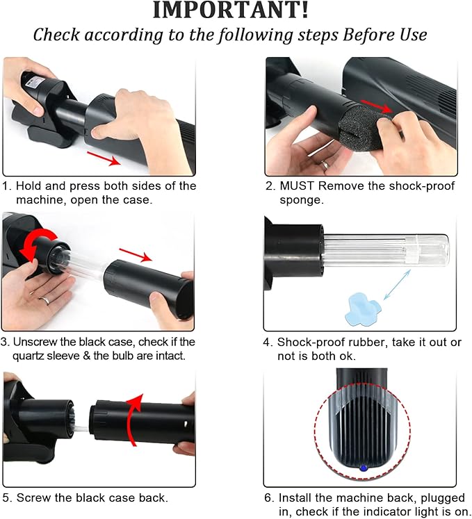 - 【Product Dimension】Includes 1 x JUP01 set + 1 x spare bulb + 2 x filter sponges!!! Size: 3.5" X 3.9" X 12", Cord: 4.6ft., Flow rate: 210 gallon per hour, suitable for 40-80 gallon tanks