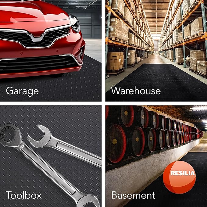 RESILIA Heavy Duty Garage Floor Runner & Protector Mat - Slip Resistant Diamond Plate PVC Mats - Water, Spill, & Stain Resistant, Black (4 feet x 8 feet), Made in The USA