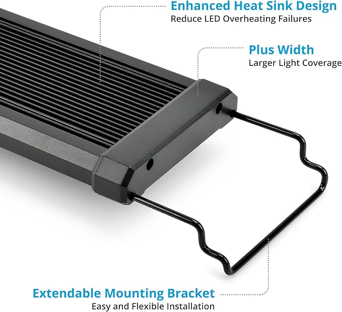 - Aluminum alloy shell helps best heat dissipation, and this light is recommended for use over glass or acrylic canopy-covered aquariums
