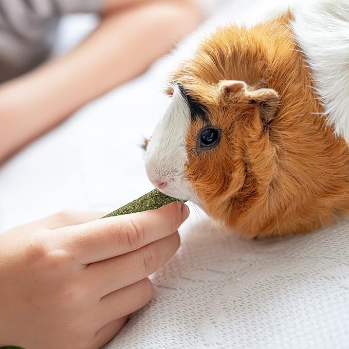 - Safe and Natural Materials: Made of natural timothy hay and no additives, with natural herbal flavor, it will safe and easily attract furry cuties' interest to chew. If your small pets have little interest in them initially, please put these timothy hay sticks in a cage and let them adjust for a while, they will slowly try to chew them and gradually become ecstatic.