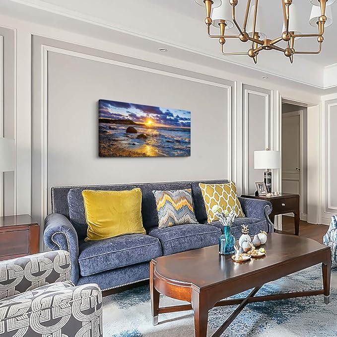 canvas wall art for living room bedroom Wall Decor blue ocean landscape painting Hang Home Decoration office bathroom kitchen sun beach sea golden Waves on the beach canvas art Prints pictures Works