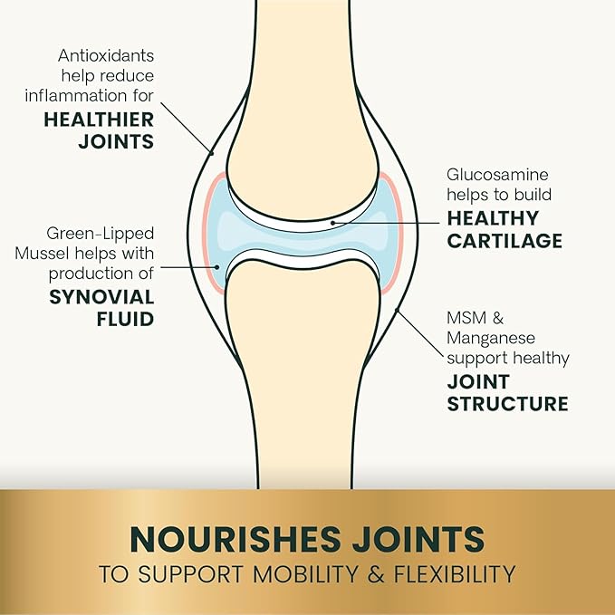 - EFFECTIVE INGREDIENTS: Made with nutritious, science-backed ingredients like glucosamine and MSM, green-lipped mussel, chondroitin, and antioxidants to help keep joints lubricated and comfortable during everyday activities that may put stress on the body