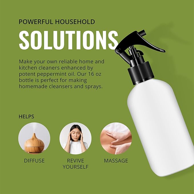 - Ample Supply for Versatility: This package includes two 16 Fl Oz bottles, totaling 32 Fl Oz of peppermint oil. Ideal for creating peppermint oil for hair growth, this bulk peppermint oil for diffuser ensures you have enough for various home essentials, including use as an essential oil for diffusers for home