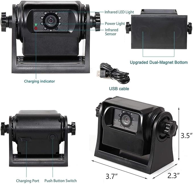- Multi-Scene Magnetic Mount: This strong magnetic backup camera secures instantly to flat metal surfaces on farm equipment hitches, trailer tongues, truck bumpers, or inside horse trailers; Patent-protected design (US Patent 10,894,515) withstands heavy equipment vibrations from tractors and RVs