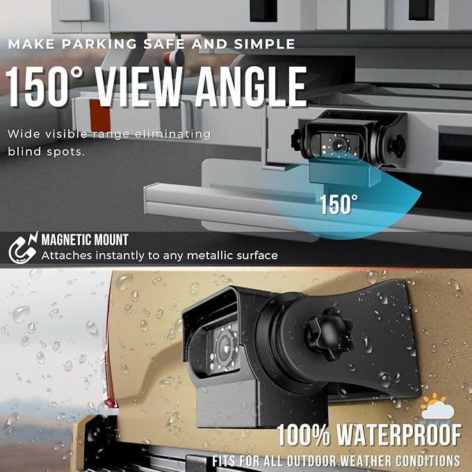 - IR Night Vision: 9 infrared LEDs display critical details in low-light conditions (30ft range), ideal for revealing hitch couplers during pre-dawn hookups or livestock posture in dark trailers; 150 degrees viewing angle eliminates blind spots during RV/trailer ball alignment or truck reversing