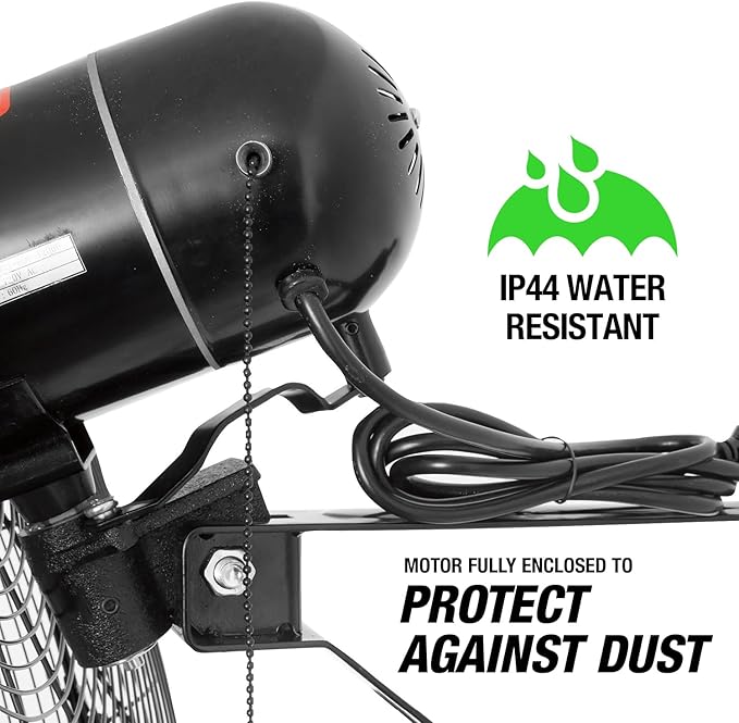- High-Capacity Airflow: The 24" industrial fan delivers powerful airflow with a capacity of 6500 CFM, making this oscillating fan ideal for cooling large spaces such as garages, workshops, or industrial facilities. It ensures consistent ventilation for improved comfort.