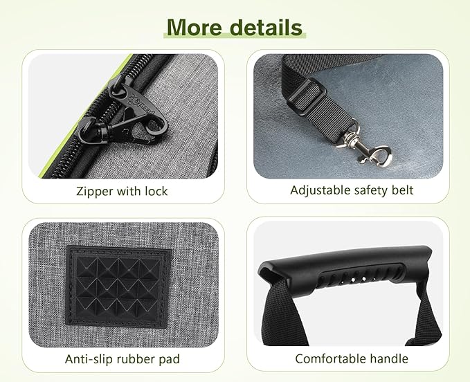 - 【SAFETY & STORAGE 】: 1, Made of high-quality Oxford Cloth, waterproof, anti-scratch, and non-irritating, let your pet breathe freely and relax. 2, Adopts lock-type zipper design to prevent the zipper from being opened by pets. Built-in retractable hook safety rope to prevent pets from escaping. 3, The pockets on both sides can store food, water bottle, poop bags, and some necessary accessories.