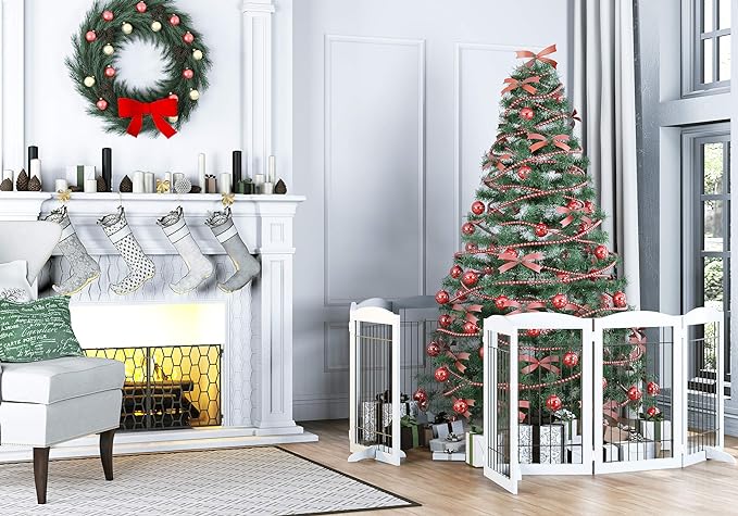 - FOLDING AND EXPANDABLE DESIGN: This Pet Dog Gate is free standing and can be folded out into the wide Z-Shape allows you to use our dog gate for doorways, full hallways, double doors, or bedrooms.