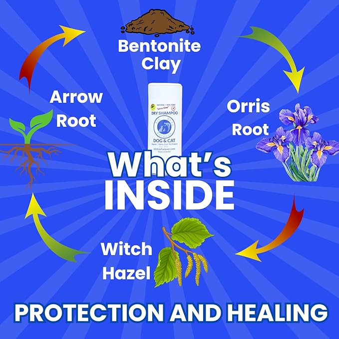 - Gentle on Sensitive Skin: Utilize our organic dog dry shampoo powder; formulated to soothe and clean sensitive skin; provides relief with antifungal powder for dogs, ensuring your furry friend stays comfortable and happy. Lick safe to help prevent worry.