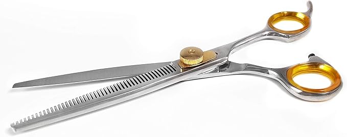- DURABLE & PREMIUM QUALITY - These thinning shears are made of 440c Japanese Stainless steel, Rockwell hardness of 59-61, and it is a beveled edge making these thinning shears for dogs long lasting and thin out thick fur and create natural-looking edges. These scissors are expertly handcrafted, finished, and tested for optimal performance and long-lasting sharpness. Additionally, they are easy to resharpen for continued use.