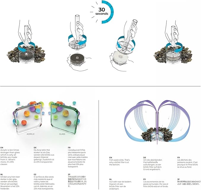 - DURABLE CONSTRUCTION — biOrb aquariums are made from acrylic, which is 10 times stronger, 50% lighter, and 23% clearer than ordinary glass aquariums. Acrylic is also a good insulator, so you don't lose as much heat as you would with a glass aquarium.