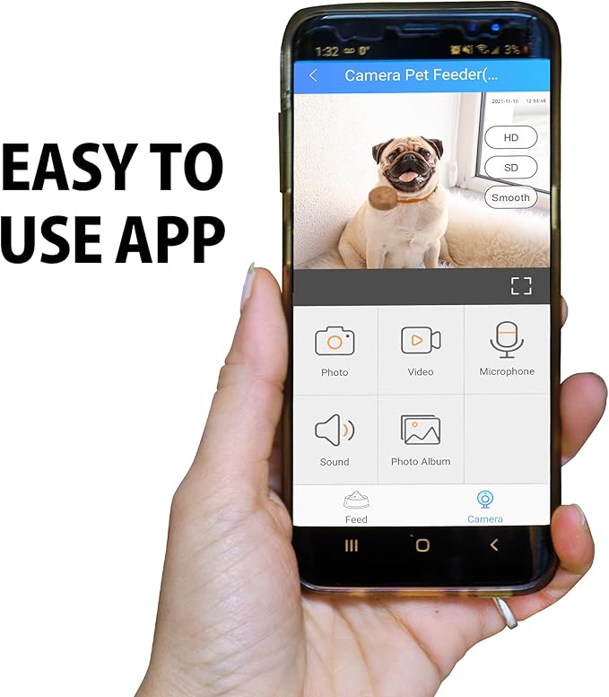 - TWO-WAY COMMUNICATION - Remind your pets of mealtime, keep them company, or calm them with the sound of your voice from a distance using the built-in microphone and speaker. This feature ensures that your pets feel connected and comforted, even when you're away.