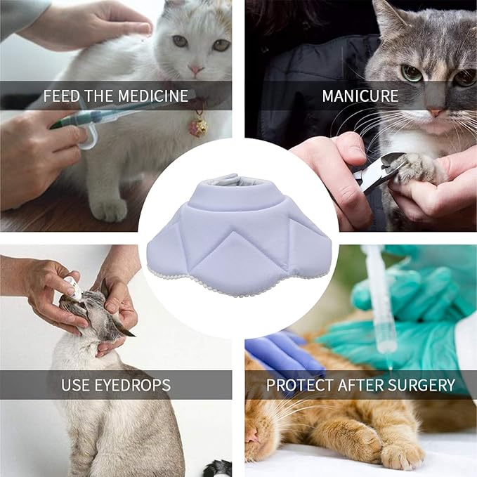 - MATERIAL:Soft cat cone is made of cotton,Slight waterproof effect,alternative to the hard plastic cone,doesn’t hurt the pet’s skin.With this soft cat cone collar,the cute pet can walk freely and stress-free,they can lay their head in any position.Collar cleaning is very important,soft cat cone can be machine washed without worrying about deformation.It can be folded to store when it not in use.