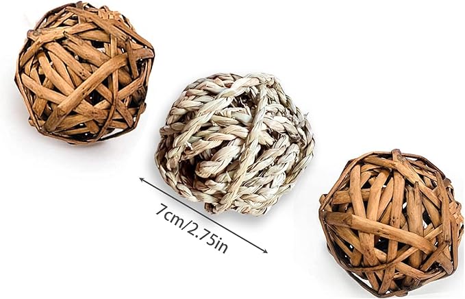 - Rabbit Toys Package Include : You will receive 1 pcs rabbit seagrass mat , 3 pcs rattan balls , 4 pcs carrots. Seagrass mat size :11.8 in Γ 11.8 in, rattan balls size : 2.72 in, carrot size : 3.9 in long, which will be sufficient for your adorable rabbits or small rodent pets to use and play