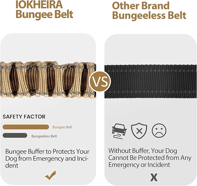 - Bungee Buffer Design: This dog safety belt has a highly elastic bungee cushioning design that prevents dogs from being injured during braking or sharp turns or bumps on the way. So that it improves your safety and that of your pet while driving.