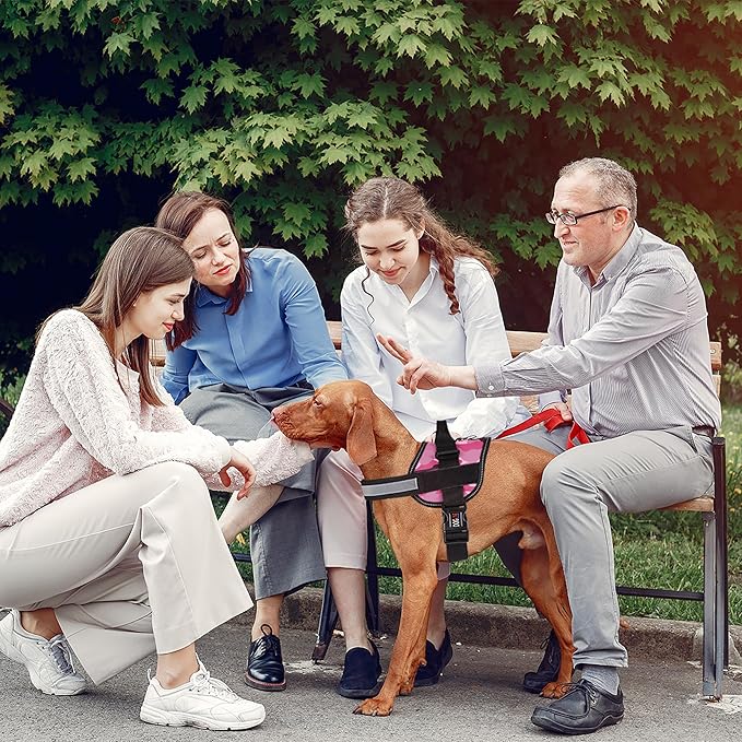 Dogline Dog Harness, Reflective No-Pull Adjustable Vest with Handle for Walking, Training, Breathable, No - Choke Harness for Small, Medium or Large Dogs Room for Patches Girth 33"-46" in Pink Camo
