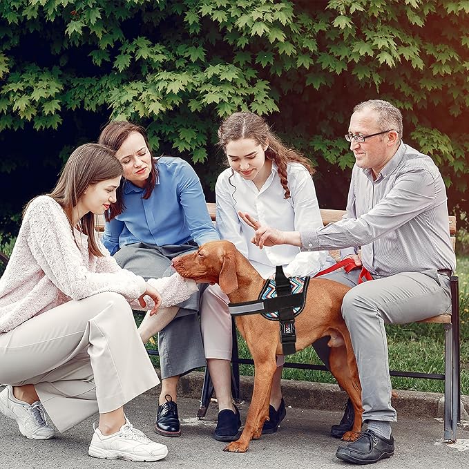 Dogline Dog Harness, Reflective No-Pull Adjustable Vest with Handle for Walking, Training, Breathable, No - Choke Harness for Small, Medium or Large Dogs Room for Patches Aztec Design 2 XL 33"-46"
