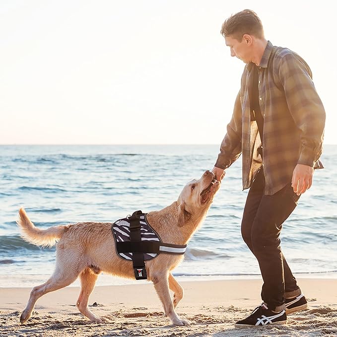 Dogline Dog Harness, Reflective No-Pull Adjustable Vest with Handle for Walking, Training, Breathable, No - Choke Harness for Small, Medium or Large Dogs Room for Patches Zebra Black/White XL 33"-46"