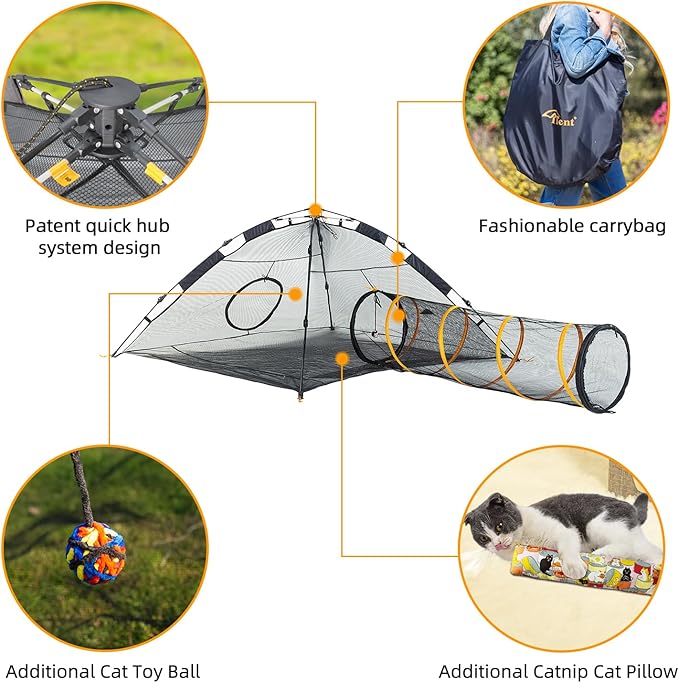 - INCLUDES ONE CAT TENT ,ONE CAT TUNNEL and ONE BALL (Random color) β Includes one cat tent with too big zipper doors, one cat tunnel with a zippered door at both ends and one ball for cats to play. Cat tent and cat tunnel can be used together or separately.