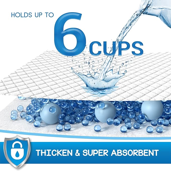 - 6-Layer Leak-Proof System: Advanced 6-layer construction features a diamond-quilted top layer for rapid liquid direction, a super-absorbent polymer core that locks away moisture as gel, and a leakproof backing to guarantee full protection for your floors