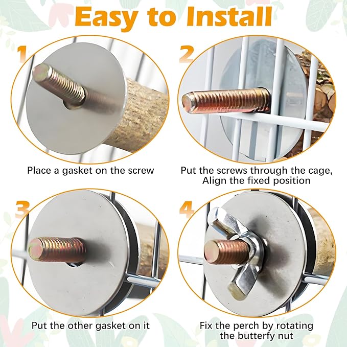 - [PACKAGE] Each package contains 8 perches, including four natural standing tree branchesοΌfour natural prickly ash perchesοΌ4 high quality 304 stainless steel washers and 4 wing nuts for easy mounting onto the cage
