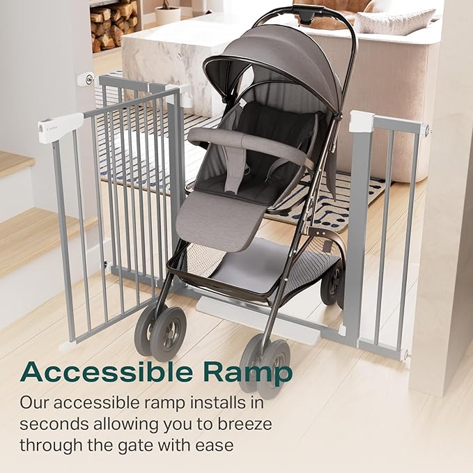 - Safe for Baby – Keep your curious crawlers secure with the double-lock safety release at the top of the stairs. Designed to be difficult for toddlers to open, ensuring your little one stays safe.