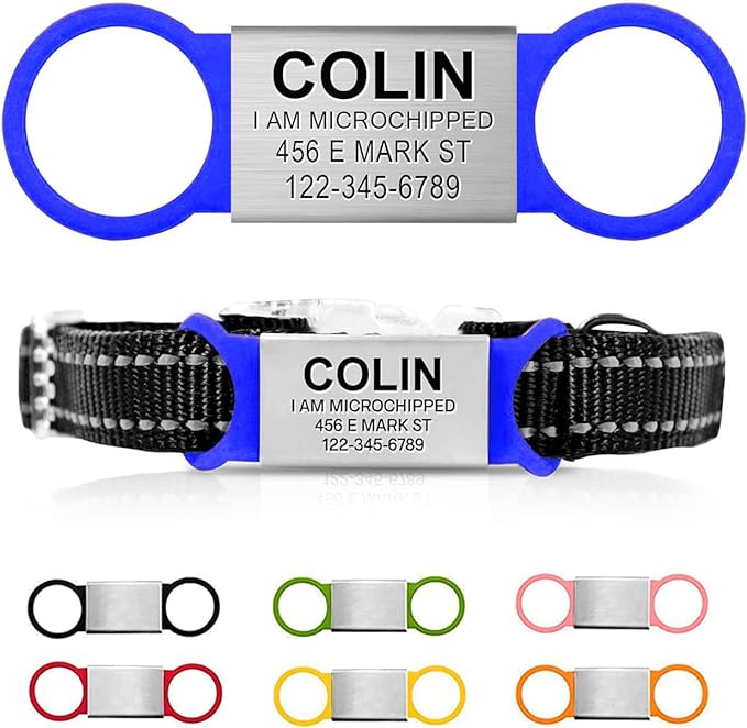 - π Laser Engraved Pet ID Tags: Rest assured, the laser engraved, clear text on your personalized dog collar tag or personalized cat collar tag will look great and will not fade. Attach your engraved pet tag to your pet's collar or harness.