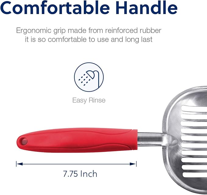 - [Functions]: The sharp edge helps to loosen clumps. The sifter area holds wet clumps and lets clean litter pass through easily. The long handle keeps you away from cat’s waste. It is designed to keep litter box clean and save you loads of cat litter.
