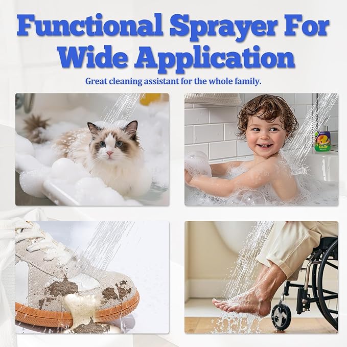 - 【Easy-Operate Handheld Sprayer】:Designed with an easy-grip ON/OFF control lever, functional hand sprayer wand provides strong flow and gentle soothing water, making easily to rinse dirt from pets’ thick fur. Adjustable jetting modes is suitable for different showering needs, comfortable and mild for bathing small pets and babies without scaring them. The lever allows to adjust water from full on to full off, convenient to control with one hand when with shampoo.