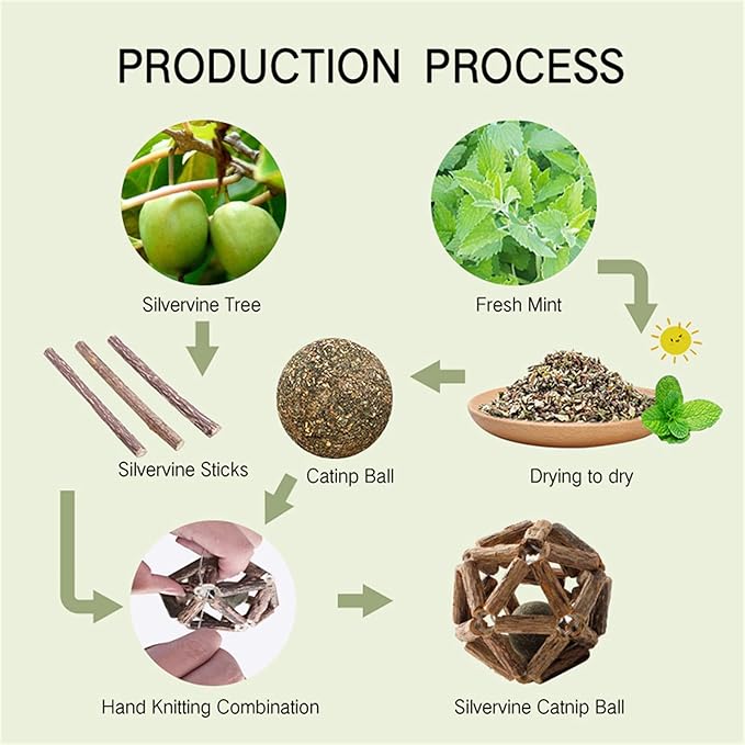 - 【100%Natural】 Silvervine (also known as Mtatabi) plant, harvested from the jungles of Southeast Asia, combined with wild catnip and hand-woven. 100% natural, no additives and preservatives, safe for pets.