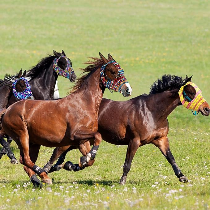 - Package contains: you will receive 4 pieces horse masks in different colors, sufficient for your horse daily replacement, and you can also share with your family members and friends who keep horses